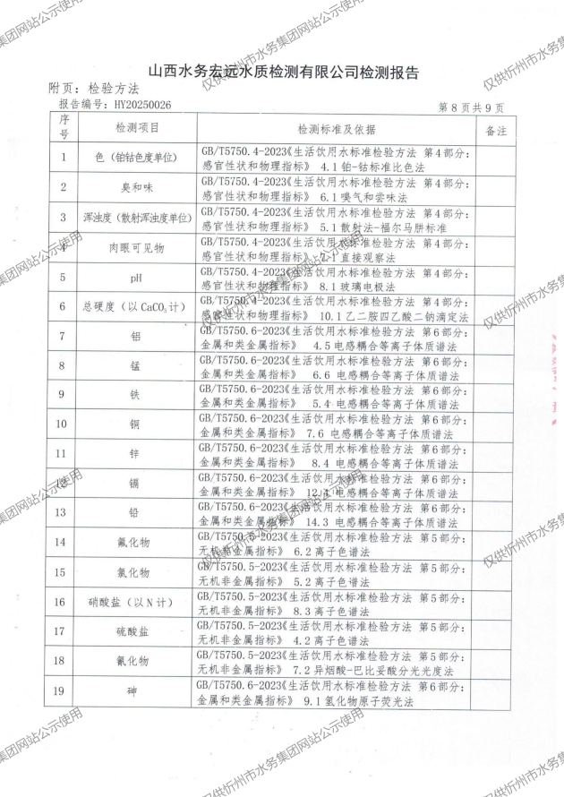 忻州城區(qū)公共供水水源水、出廠水、管網(wǎng)水、管網(wǎng)末梢水2025年02月份水質(zhì)信息公示