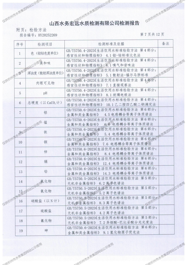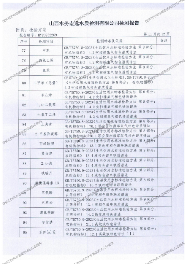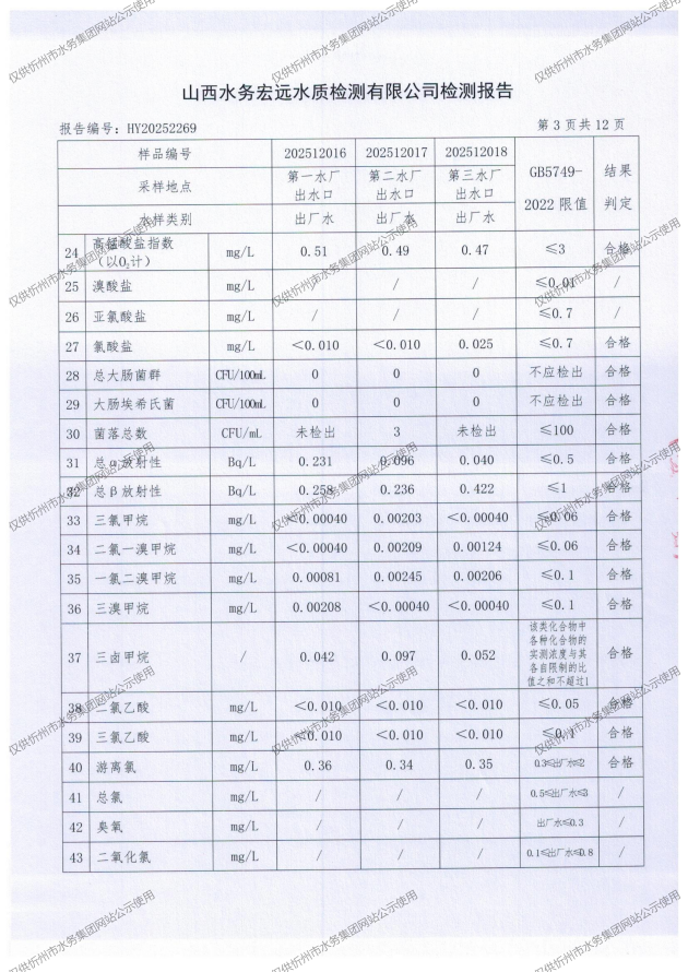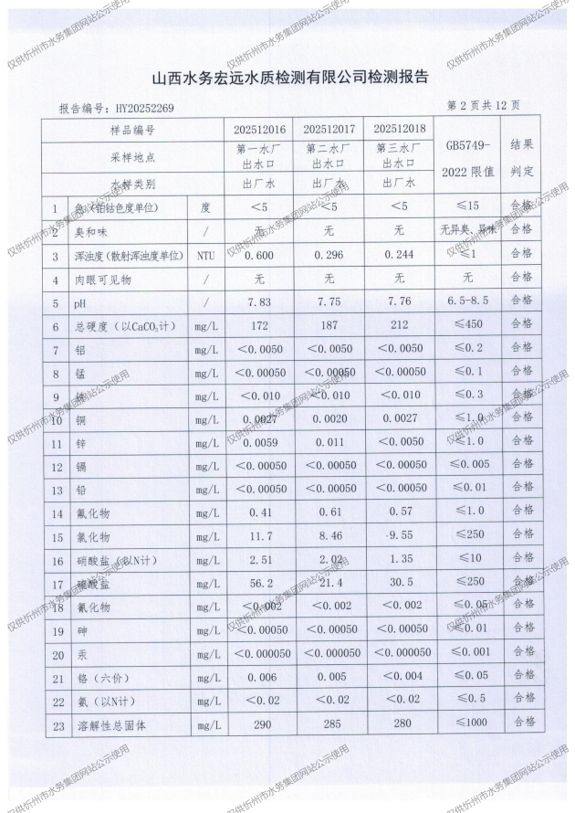 2025年忻州城區(qū)公共供水南水廠、三水廠、云中水廠出廠水97項水質(zhì)全分析