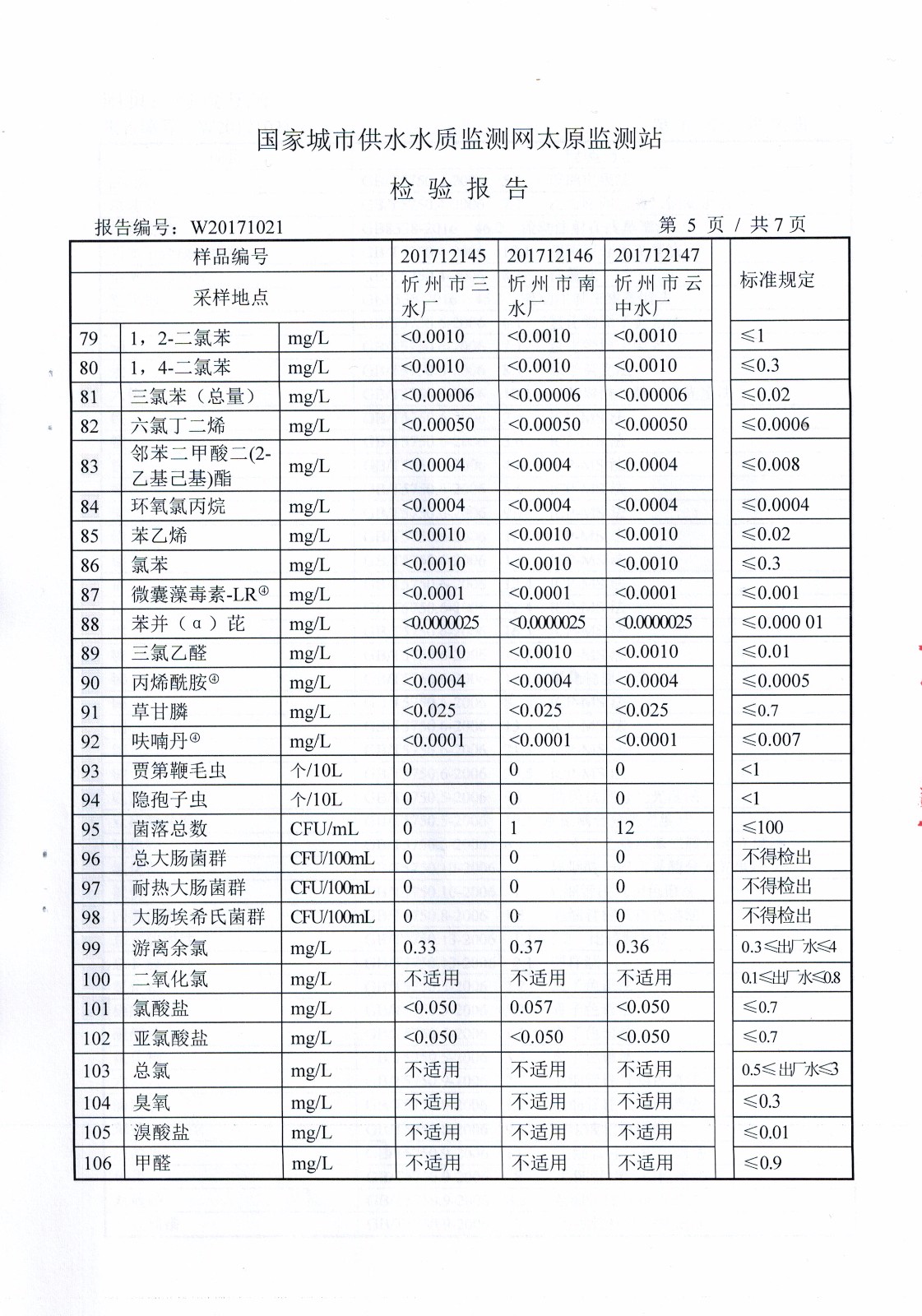2017年忻州城區(qū)公共供水南水廠、三水廠、云中水廠出廠水106項(xiàng)水質(zhì)全分析