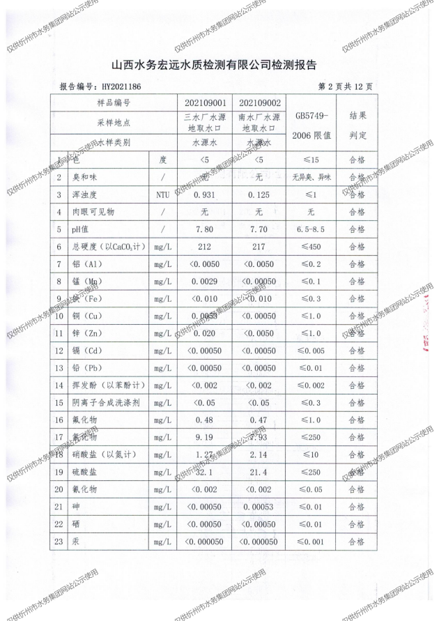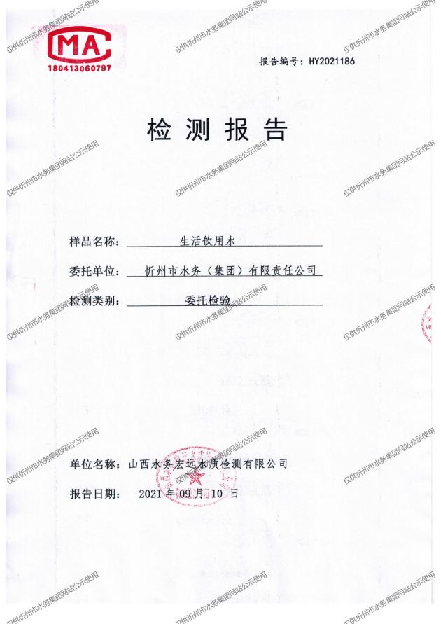 忻州城區(qū)公共供水水源水、出廠水、管網(wǎng)水、管網(wǎng)末梢水2021年9月份水質(zhì)信息公示